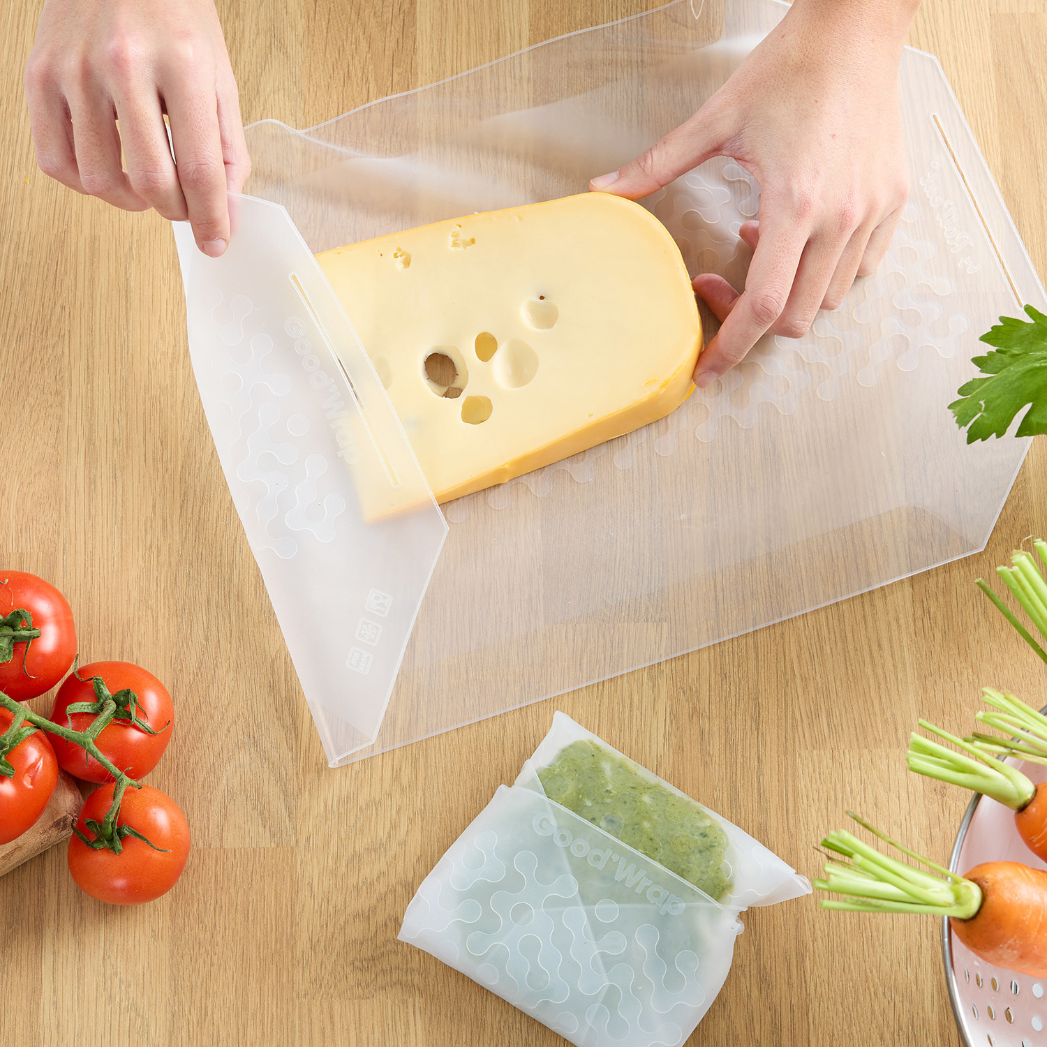 De wrap is bestand tegen zowel vriezen als verwarmen, waardoor hij heel veelzijdig is. Je kunt er gerechten mee invriezen, opwarmen of afdekken zonder dat hij zijn vorm verliest. En omdat hij flexibel is, neemt hij veel minder ruimte in dan traditionele bewaarbakjes. Zo blijft je vriezer overzichtelijk en kun je er meer in kwijt.